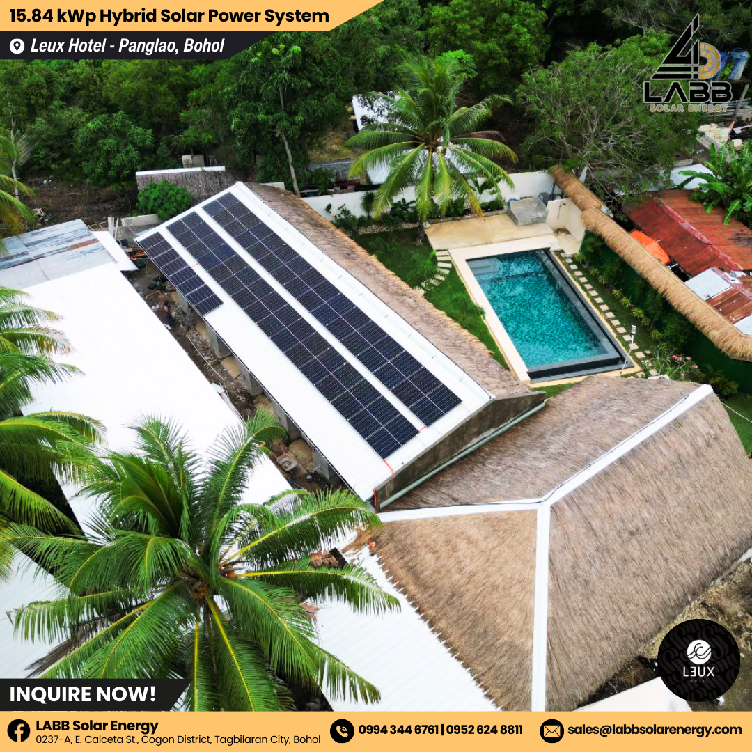 15.84 kWp Hybrid Solar Power System SetupLeux Hotel | Panglao, Bohol View fullsize View fullsize View fullsize View fullsize View fullsize View fullsize