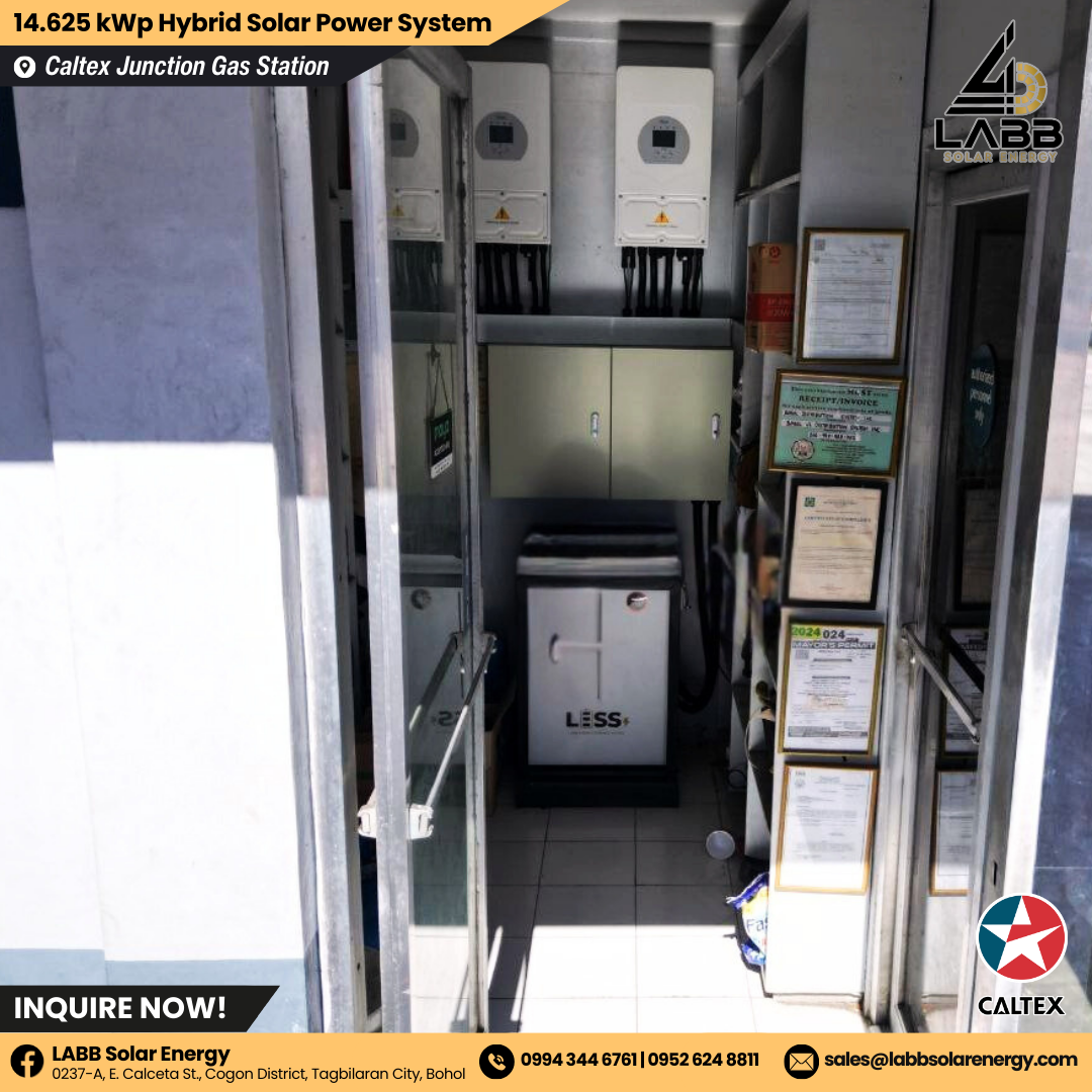 14.625 kWp Hybrid Solar Power System SetupCaltex Junction Branch | Tagbilaran City, Bohol View fullsize View fullsize View fullsize View fullsize View fullsize View fullsize